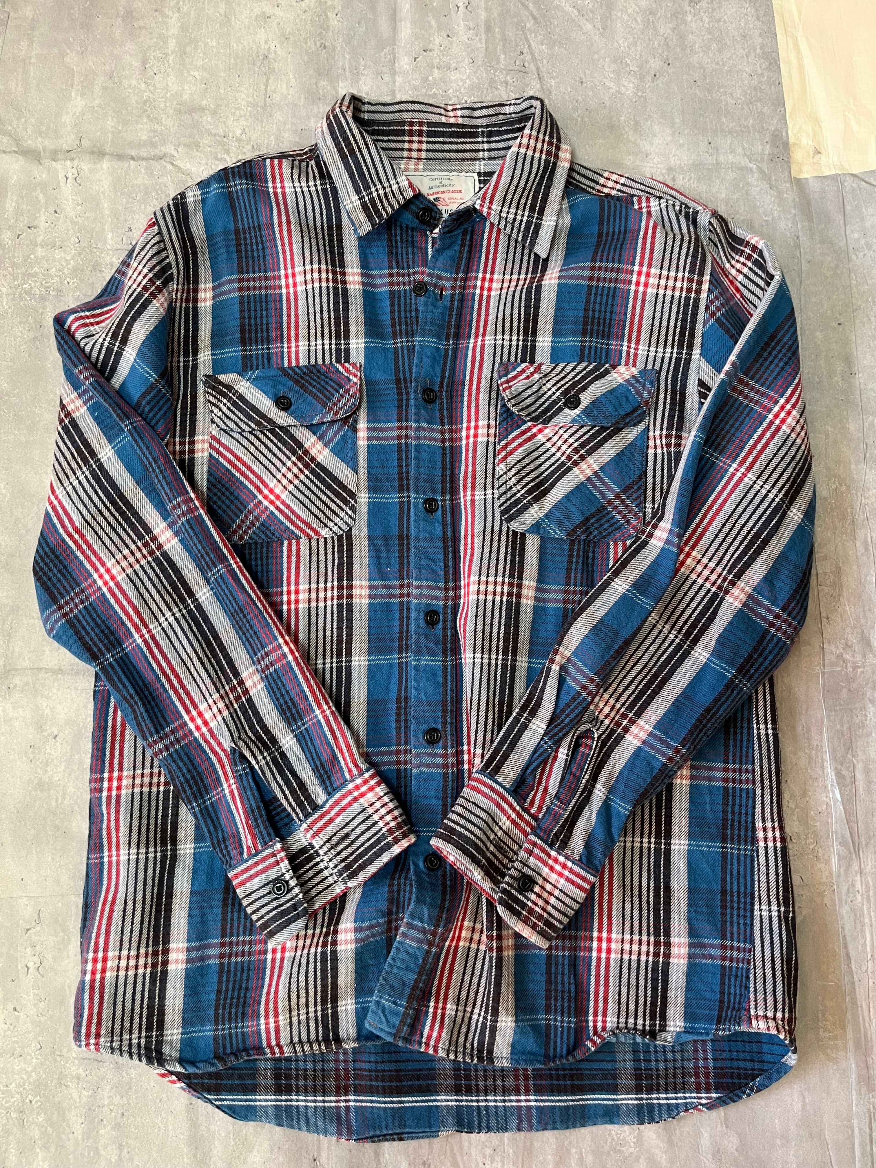 AVIREX 青赤 フランネルチェックシャツ メンズサイズXL 旧モデル